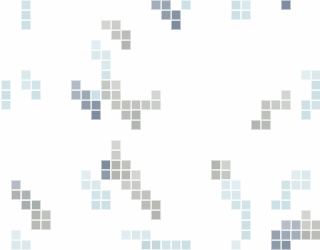 Many copies of a single reinforcement learning agent trained to play snake using the deepq learning algorithm in convnetjs. The food is hidden but the agents all see the same food item, leading to a mixture of random and coordinated movements across the screen. The agents were trained on a smaller 5x5 grid, which is what they continue to see, repeated across the canvas.